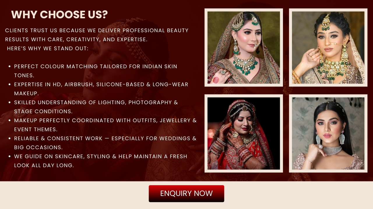 My wedding look was exactly how I imagined! I booked Bride & Shine for my wedding, and honestly, it was one of my best decisions. The makeup looked fresh, elegant and stayed flawless throughout the rituals. Everyone kept asking who did my makeup. Highly recommended!